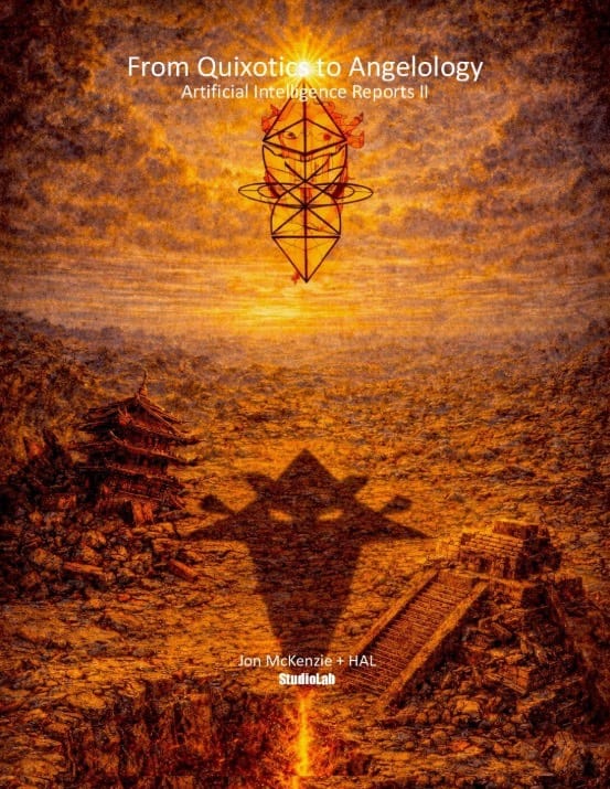 Artificial Intelligence Reports take on the airs, presence, and parole of conceptual coherence, ideational clarity, and unified voice, unlike the Konsults below which reveal the messy backend langue or system. This Apollonian-Dionysius mix phases in and out with labyrinthian threads of Ariadne, Zhuangzi, and a bewildered Borgesian shaman. Both Reports and Konsults function as Spiritual Design Experiments featuring generative AI, linguistic, visual, and gestural transmediation.
